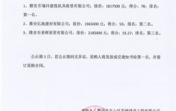 本項(xiàng)目評(píng)審活動(dòng)于2021年2月19日?qǐng)A滿結(jié)束,現(xiàn)將評(píng)審情況公示如下:1、雅安市浩銘建設(shè)工程有限公司;報(bào)價(jià):4614594.70元;得分:96.1;排名:第一名2、四川省名興建筑有限公司;報(bào)價(jià):5309632.20元;得分:94.8;排名:第二名3、四川源信建筑工程有限公司;報(bào)價(jià):5336891.50元;得分:94.2排名:第三名4、中標(biāo)星辰建筑工程有限公司;報(bào)價(jià):4888150.40元;得分:92.9排名:第四名公示期3日,若公示期間無異議,招標(biāo)人將發(fā)放中標(biāo)通知書給第一名,并簽訂合同。...