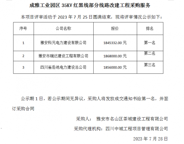 成雅工業(yè)園區(qū)35KV紅黑線部分線路改建工程采購(gòu)服務(wù)